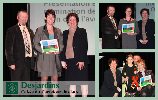 La Caisse Desjardins du Carrefour des lacs a également procédé au dévoilement des projets gagnants au concours « On crée l’avenir! » que le comité de vie associative a mis sur pied en allouant un fonds supplémentaire de 5 500 $ afin de soutenir des organismes de notre milieu dans le démarrage d’un nouveau projet.
