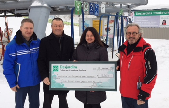 Parce que la Caisse Desjardins du Carrefour des lacs a le désir de contribuer au mieux-être de sa collectivité, celle-ci est fière d’appuyer la Coopérative de solidarité du Mont Adstock.