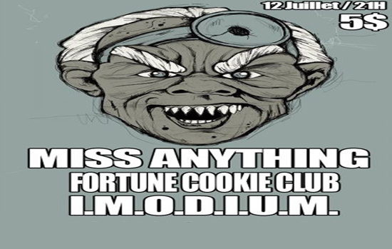 Pour plus d’informations sur l’événement cliquez ici  MISS ANYTHING / FORTUNE COOKIE CLUB / I.M.O.D.I.U.M