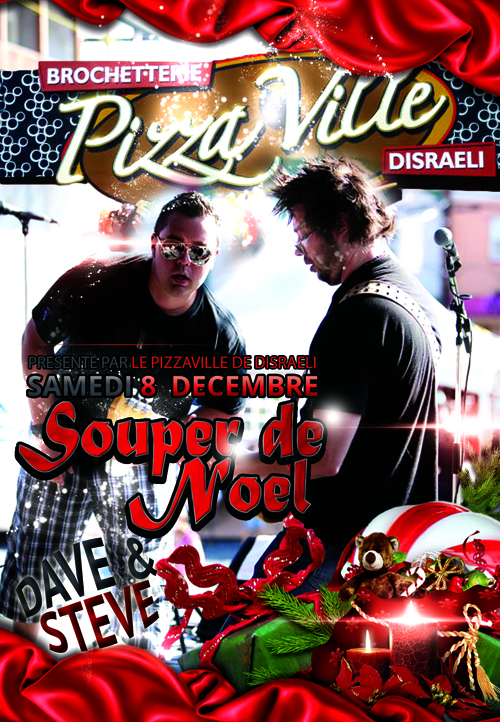 Le restaurant Pizzaville de Disraeli vous invite pour un souper de Noël animé. La fête sera à l’honneur et un duo de musicien égayera votre soirée. En effet, Steve Houle et Dave Carrier seront sur place pour vous jouer des morceau tout au long de la soirée. En plus de savourer un bon repas, vous pourrez vibrer au rythme de grands succès de la musique interprétés par le duo. Profitez de cette invitation pour débuter les célébrations du temps des fêtes.