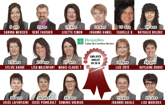 Félicitations à vous tous et toutes pour votre implication et votre excellent travail au sein de la Caisse Desjardins du Carrefour des lacs pendant toutes ces années!