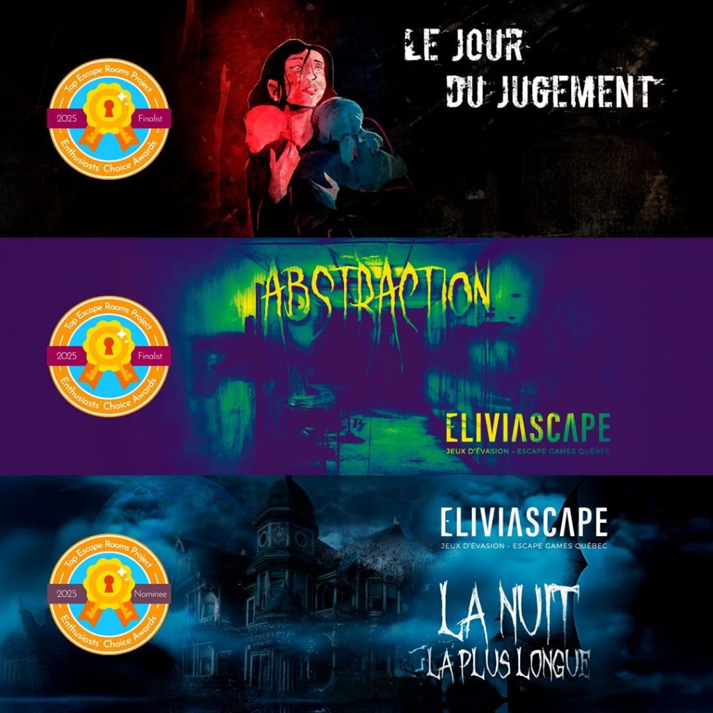 Eliviascape a tenu à féliciter ses collègues québécois qui contribuent à faire rayonner le savoir-faire de la province : Cabinet Mysteriis, Escaparium (Laval et Shawinigan), Sauve qui peut, et Immersia.