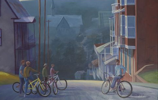 « La relève, rue King, Thetford » de Jean-Roch Labrie | acrylique sur Isorel (masonite);